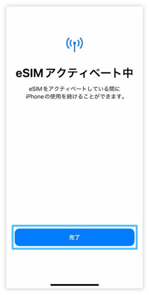 ➡eSIMのアクティベート中の画面で【完了】を選択この後、プランの名称等をご選択ください。